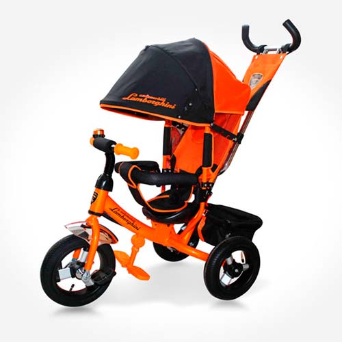 مزايا "Lamborghini Air": عجلات مع محامل ، مقعد بثلاثة مستويات ، سقف ، حقيبة وسلة.