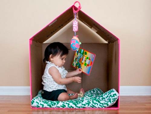 - منزل من الورق المقوى. يمكن صنع منزل لعبة الورق المقوى بسهولة بنفسك. سيتطلب هذا العديد من صناديق الكرتون الكبيرة والخيال. يمكن تزيين هذا المنزل بالتطبيقات أو مغطى بالقماش. يمكن للطفل نفسه أن "يعلق" على تصميم المنزل: إن أسطحه مثالية للرسم بالطلاء وعلامات ، حتى يتمكن الطفل من إجراء الاختبارات الإبداعية الأولى دون الإضرار بورق الجدران والأبواب في الشقة. منزل الكرتون هش للغاية ، لذلك فهو الأنسب للأطفال الصغار. يمكن أيضًا إنشاء الوضع في المنزل بيديك.