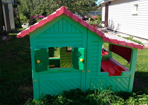 - البيوت البلاستيكية. تتكون البيوت البلاستيكية من ألواح مسبقة الصنع. يمكن ربط جدران هذا المنزل وسقفه وأبوابه ببعضها البعض بسهولة وتفكيكها بسهولة إذا لزم الأمر. للعناية بمثل هذا المنزل أمر أساسي: يمكن غسله بسهولة بالماء الدافئ والصابون ، لذلك لا توجد عواقب لألعاب الأطفال رهيبة بالنسبة له. مجموعة ضخمة من البيوت البلاستيكية ، بالإضافة إلى حركتها وضغطها أثناء التخزين ، هي تصميم متنوع. يمكن اختيار منزل بلاستيكي لفتاة لطيفة (ذات أنماط لطيفة ، بألوان وردية ، وما إلى ذلك) ، ولصبي مسترجح (على سبيل المثال ، في شكل سفينة قرصنة). مثل هذه المنازل تتكون من طابقين. إذا كنت ترغب في ذلك ، يمكنك اختيار منزل ، "فرص ألعاب" تكملها الشرائح والأراجيح وأفراح الأطفال الأخرى. بيوت لعب الأطفال مصنوعة من بلاستيك غير سام ، لذلك لا يخافون من أشعة الشمس المباشرة. بشكل عام ، هذه المنازل مقاومة للغاية لأي ظروف جوية. عادة في البيوت البلاستيكية توجد مقاعد مرتفعة وطاولة صغيرة ، ولكن إذا سمح حجم المنزل بذلك ، فقد يظهر أثاث آخر هناك.