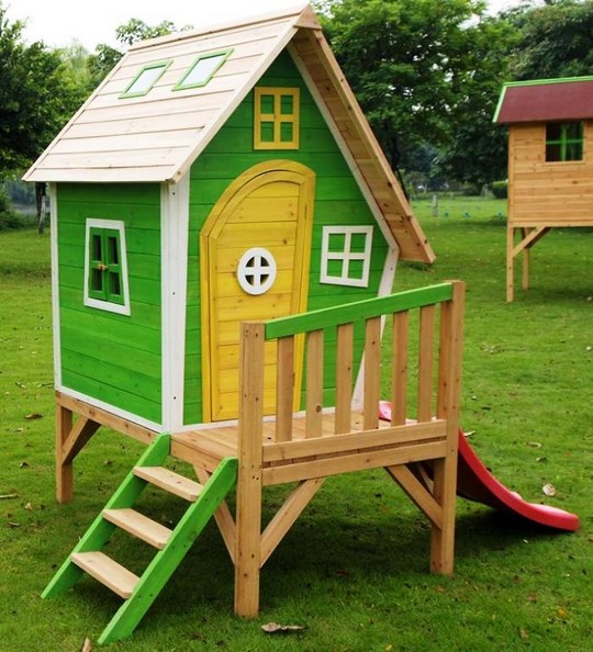 - بيوت خشبية. البيوت الخشبية هي "رأس مال" وأقل حركة. بشكل عام ، المنزل الخشبي في الموقع عبارة عن هيكل ثابت ، والذي يقع على مدار السنة. مزايا المنازل الخشبية هي أنها أكثر متانة وصديقة للبيئة مقارنة بالبلاستيك.صحيح ، إذا قمت بشراء منزل خشبي ، ولم تفعل ذلك بنفسك ، فلن تتمكن من الادخار: سيكلف المنزل الخشبي أكثر بكثير من المنزل البلاستيكي. يوفر البيت الخشبي فرصًا كبيرة من حيث الديكور الداخلي وخلق "ديكور". إذا كنت تريد ، يمكنك صنع منزل كامل منه بسرير وطاولة وكراسي ورفوف على الجدران. يمكنك أيضًا تحويل المنزل إلى مجمع ألعاب كامل مع أراجيح وشرائح وأشرطة أفقية ومتاهات.