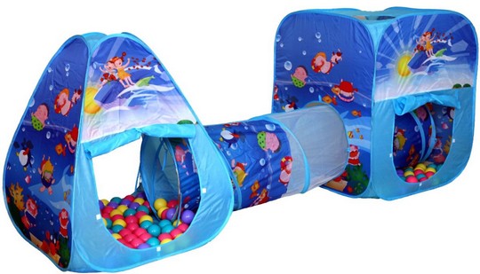 - خيمة الالعاب - نسخة مدمجة واقتصادية للغاية من المنزل للطفل. يمكن بناء أبسط خيمة من الشرائح الخشبية أو الأنابيب البلاستيكية والنسيج. يشبه تصميم هذه الخيمة wigwam ، لذلك إذا رغبت في ذلك ، يمكن تزيينها وفقًا لذلك. بالإضافة إلى خيام wigwam المثلثية ، هناك خيام بإطار مصنوع من قضبان معدنية مغطاة بنسيج كثيف. أشكال هذه الخيام متنوعة للغاية: من أبسط منزل مع أربعة جدران وسقف إلى سفن القراصنة والمجمعات ذات الأنفاق والمتاهات. يمكن طي هذه الخيام بسهولة إلى حالة مسطحة ، لذا فإن تخزينها سهل للغاية. ميزة أخرى من هذه الخيمة هي أنه يمكنك بسهولة إنشاء بركة كرة منها ، صب عدة مئات من الكرات البلاستيكية بقطر يصل إلى 10 سم هناك.الألعاب في بركة الكرة هي تدليك كامل للجسم للطفل والكثير من المرح.