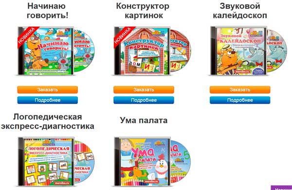 يمكنك المشاركة ليس فقط على الموقع عبر الإنترنت ، ولكن يمكنك أيضًا طلب الألعاب / التدريب ومواد علاج النطق على الأقراص