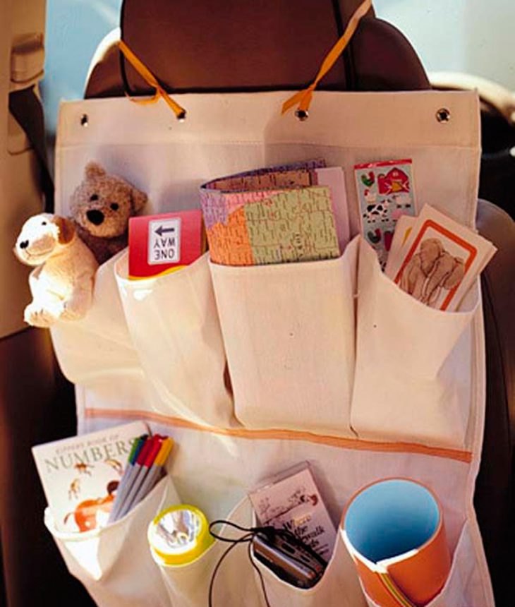 18. Per evitar que els nens s’enganxin amb el menjar al cotxe, utilitzeu una cistella de plàstic.
