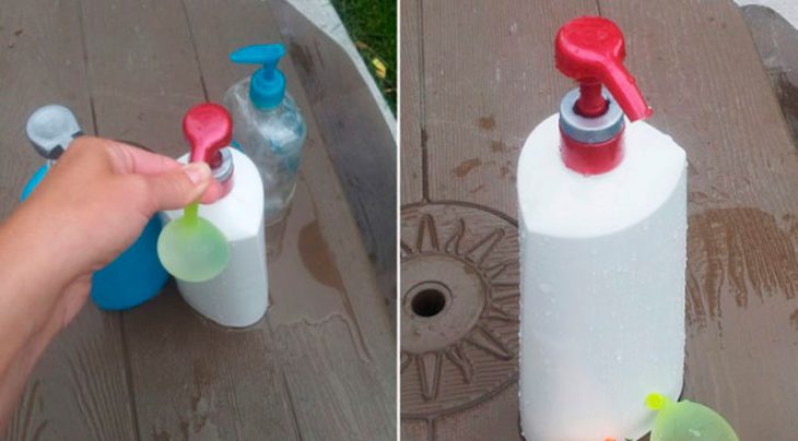 19. A partir d’una ampolla usada amb dispensador, podeu fer una bomba d’aigua excel·lent per a pilotes.