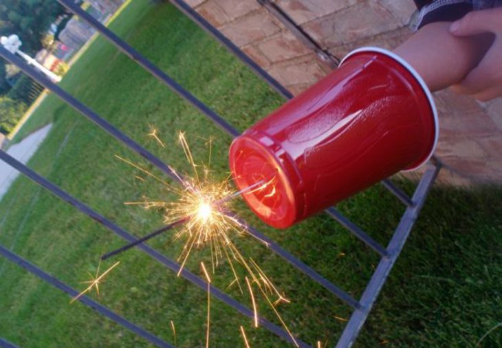 2. Feu que el nen tingui una coberta de protecció casolana a la mà d’un got de plàstic la propera vegada que estigueu a punt d’incendiar les guspires.