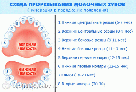 Molt sovint, les primeres dents comencen a aparèixer uns set mesos, però aquest no és un postulat.