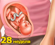 Dítě.Kůže dítěte je pomačkaná. Míchání se stává silnějším. Pokud se dítě v tuto chvíli narodí, jeho šance na přežití jsou 85%. Dítě se snaží dýchat nezávisle a vyvíjet plíce. Stále má dostatek prostoru, aby se otočil do správné polohy - hlavou dolů. Hmotnost - 900 - 1100 g, délka - 37 cm.