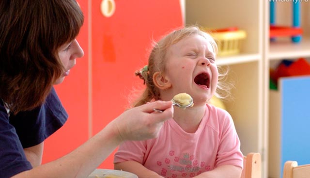 9. La tante qui me fait manger est très en colère. J'en ai déjà marre de la peur. Il n'y a aucune raison d'être «offensé» par les éducateurs qui n'obligent pas les enfants à tout manger pendant la période d'adaptation. Il ne l'a pas terminé, mais il n'a pas vomi. Dans quelques jours, l'appétit viendra, mais se débarrasser des vomissements habituels serait plus difficile.