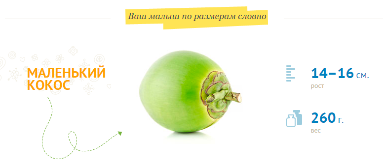 Inside you, a real man grows up. It has proportions almost like that of a newborn. Growth is 14-16 cm, and weight is about 260 g. The fetus spends almost all day at rest, and moves only a few hours every day. The tiny brain sends signals, and your baby "tries the forces":