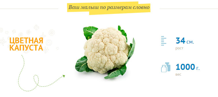 The full growth of the fetus is approximately 34 cm (from the top of the head to the heels), weight about 1 kg.