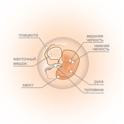 The largest parts of the body are the head and torso. The arms and legs are tiny processes with tubercles-fingers. The size of the fetus (more precisely, the embryo) in the 6th obstetric week reaches 4 mm, weight - up to 2 g. And here is how it develops:
