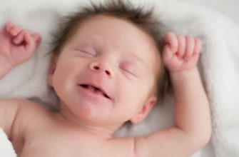 Newborn baby cries, bangs with arms and legs