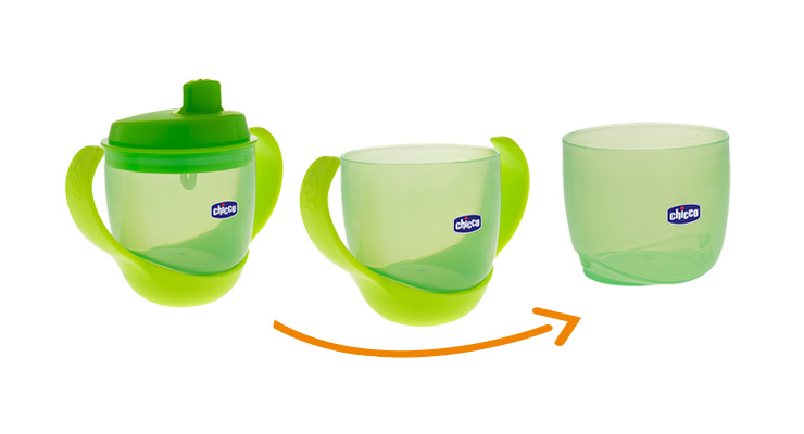 After the cup comes the "era" of the usual cup. A cup, like any dishes for feeding children, should be convenient and safe. Better if it is also plastic. Keep in mind that it is inconvenient for a child to hold a full cup with one hand, so you can get a cup with two handles or no handles at all. The volume of the cup should be small, again for the convenience of its small owner.