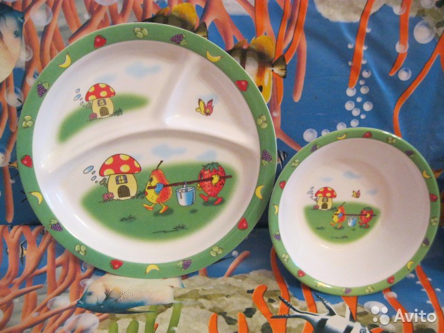 - To make it pleasant and interesting for the baby to eat as adults, children's dishes are decorated with pictures. Drawing pictures should be of high quality. Check for ink peeling when washing or using.