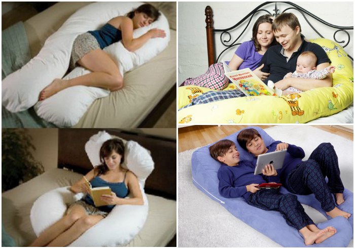 Katia: Primero compré en forma de boomerang. Y todo sería genial, pero de lado a lado con esta bandura es inconveniente dar la vuelta por la noche. Después de comprar U, estoy muy, muy feliz, estoy durmiendo en una cuna, mi espalda baja ha dejado de doler. Solo es necesario tener en cuenta el tamaño de la cama, ya que una almohada ocupa mucho espacio)