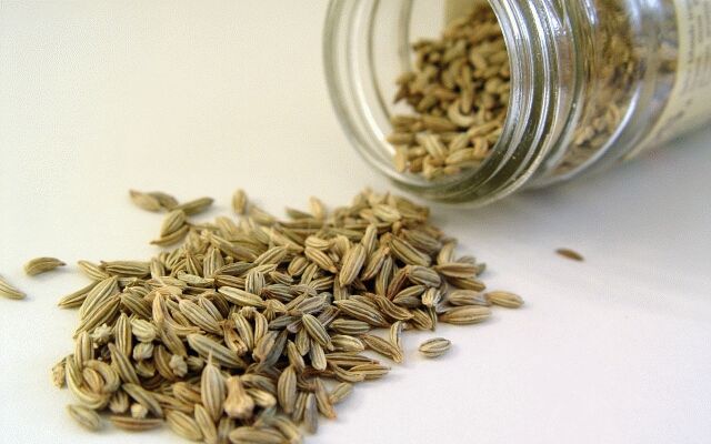 - Vierta en un vaso (250 ml) una cucharadita de semillas de hinojo secas, previamente molidas en un molinillo de café o licuadora.
