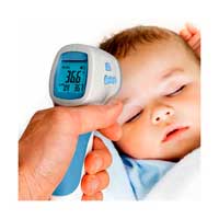 A legújabb találmány nem érintkező és füldugó. Az első azonnal méri a hőmérsékletet, amikor a bőrre kerül. Nem különbözik nagy pontossággal, de kényelmes a hőmérséklet dinamikában történő szabályozására vagy a tejkeverék hőmérsékletének meghatározására.