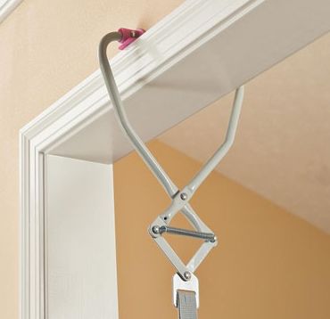 - A horog arra is használható, hogy jumpereket rögzítsen a mennyezethez, amely lehetővé teszi a szerkezet felfüggesztését a helyiség bármely pontján, nem csak az ajtóban.