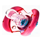 Választottam a lányomnak egy fogszabályozó formájú szilikon bábát, a Nuk gyártót, amely drága. És egyáltalán nem szopta. Szokásos gumit kellett vásárolnom, így nem engedjük ki a szájból.
