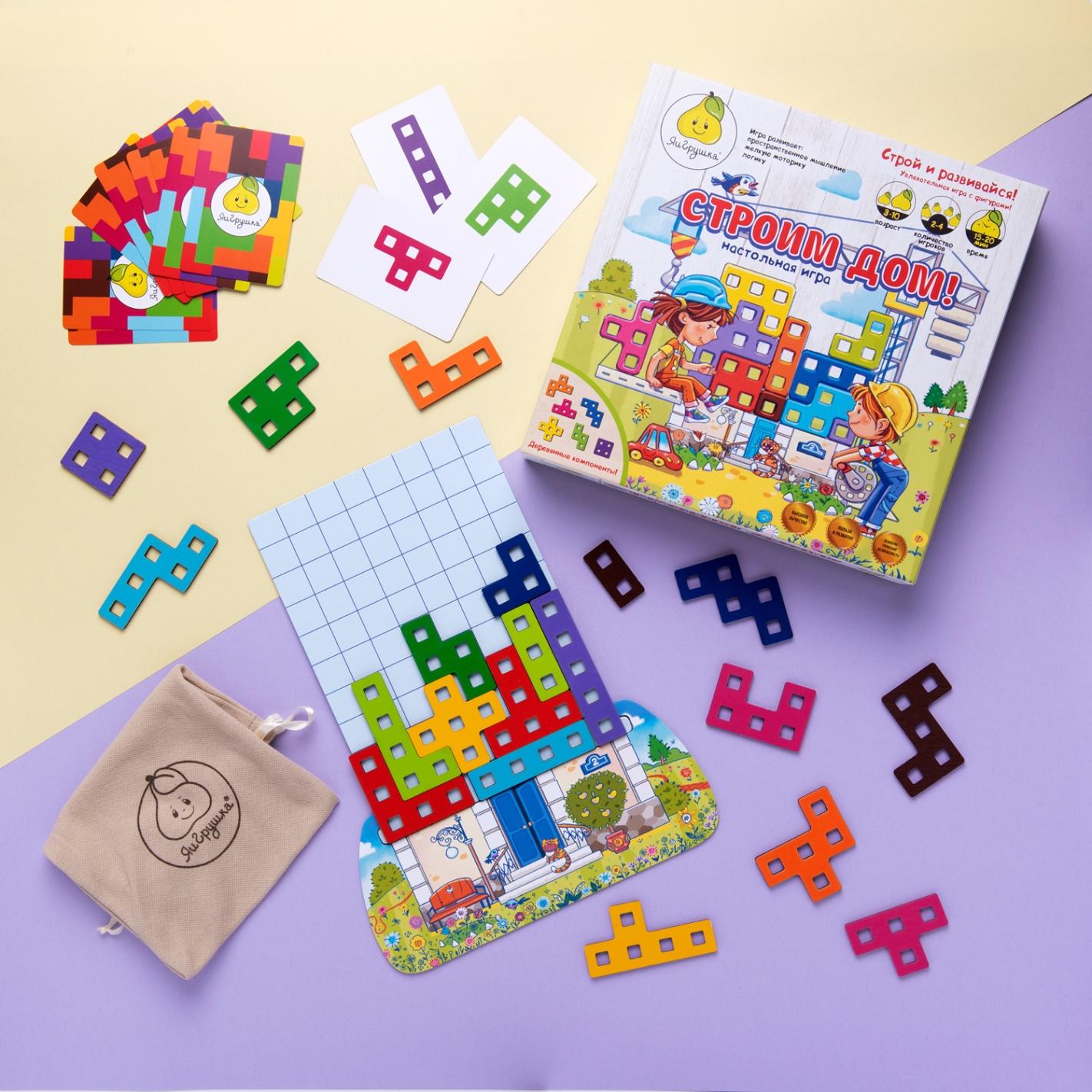 - Puzzle "Construire une maison!" de la marque YaiGrushka - une version divertissante du jeu pour le développement de la pensée spatiale et de la logique. Devant vous est un terrain de jeu sous la forme d'un cadre de maison. Nous le posons sur la fondation, posons tous les blocs de construction à côté et distribuons les cartes avec leur désignation aux participants.Le gagnant sera celui qui réussira à mettre tous ses blocs (qui figurent sur les cartes) sur le terrain de jeu. Vous ne croyez pas que tous les matériaux de construction peuvent tenir sur le terrain? Résolvez ce puzzle et devenez le constructeur de l'année!