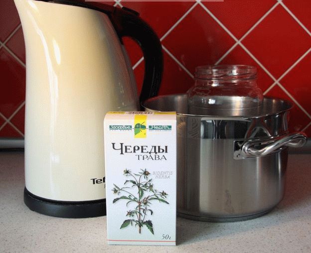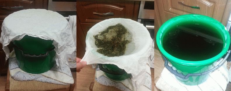 Versare una manciata di erbe della farmacia di vostra scelta nella padella pari alla quantità di una palma adulta, riempire con tre litri di acqua, coprire e coprire la padella con un asciugamano. Lasciare in infusione il brodo per un'ora, un'ora e mezza. Il brodo prima dell'uso deve essere accuratamente filtrato con un setaccio fine. Nessuna foglia, ramoscello o altra parte delle piante dovrebbe galleggiare in un brodo filtrato.