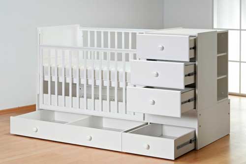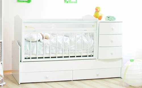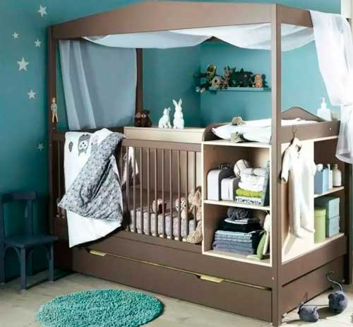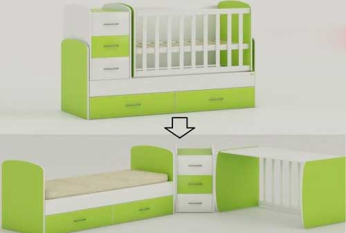 - Molti letti trasformatori sono dotati di fasciatoi, mensole, cassetti, cassettiere: tutto ciò non deve essere acquistato separatamente, il che consente di risparmiare.