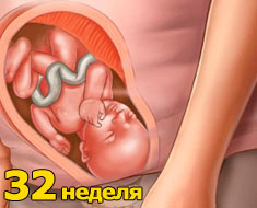 Barn.Babyen blir overfylt i livmoren, så den beveger seg sjeldnere enn før. Barnet fortsetter å konsumere kalsium fra mors kropp, som er så viktig for dannelsen av skjelettet. Et hudmønster vises på fingrene og tærne. Huden er nå mindre rød, og hårene på hodet blir tykkere. Babyvekt - 1900-2400 g, lengde - 45 cm.