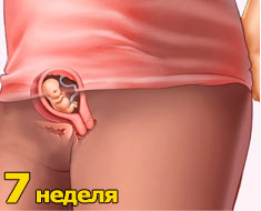 Barn. Navlestrengen er fullstendig dannet, noe som gir blodsirkulasjon mellom organismer av mor og barn. Små hender og bittesmå fingre begynner å danne seg. På dette tidspunktet blir kjønn på barnet bestemt. Dannet ansikt, nese, nesebor, aurikler, overleppe. Overhuden dannes. Embryoet retter sakte ut, vokser og når en vekt på 4-6 g, lengde - 1,5-2 cm.