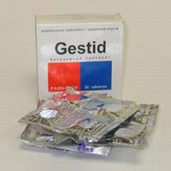 Odnosi się do połączonych środków zobojętniających kwas, obejmuje wodorotlenki magnezu i glinu, trójkrzemian magnezu. Ten lek można przyjmować w czasie ciąży. Jest dobrze tolerowany, jest bardzo mało efektów ubocznych, a przypadki ich wystąpienia są niezwykle rzadkie. Gestid ma postać tabletek do żucia i ma niski koszt - do 100r.