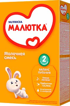 Skład mieszanki „Baby” nr 2 różni się od mieszanki mlecznej od urodzenia obecnością L-karnityny, a także inną kombinacją witamin i minerałów, opracowaną zgodnie z wiekiem dziecka. W ramach Baby nr 2 istnieje większa liczba białek kazeiny, które są dłużej trawione i lepiej nasycają dziecko. Ta mieszanka jest bardziej wysokokaloryczna.Zawiera inteligentne żelazo - żelazo w optymalnym połączeniu z cynkiem i witaminą C dla lepszego wchłaniania żelaza, co jest ważne dla zapobiegania niedoborowi żelaza.