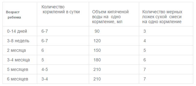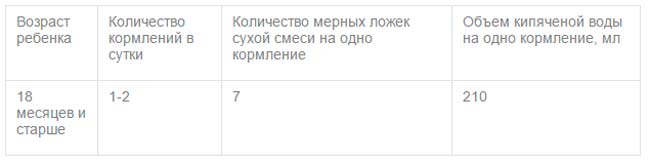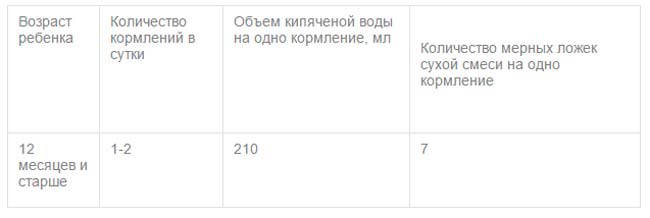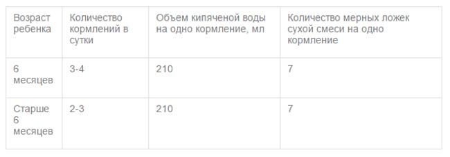 Aby przygotować mieszaninę, zapoznaj się z tabelą i skonsultuj się z pediatrą. 100 ml gotowej mieszanki = 90 ml wody + 3 odmierzone łyżki suchej mieszanki.