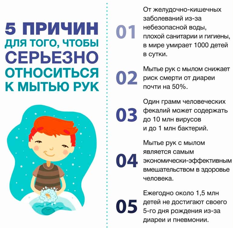 Dzieci są najbardziej podatne na tego rodzaju choroby, ponieważ ich ciało jest bardziej podatne na działanie tych patogenów. Jednak większość dzieci nie lubi myć rąk ani robić tego źle: pośpiesznie i niepoprawnie. Jednak mycie rąk powinno być koniecznością dla dziecka, tak naturalne jak jedzenie lub spanie. Dlatego zadaniem rodziców jest nauczenie dziecka podstawowych zasad higieny.