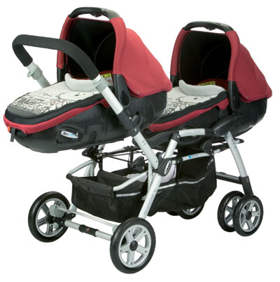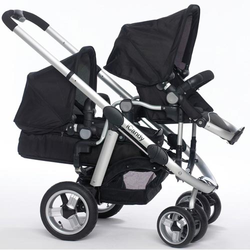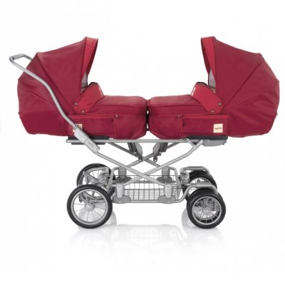Istnieją modele z jednym siedzeniem, które jest wyposażone w przegrodę lub pasy bezpieczeństwa, lub z dwoma oddzielnymi siedzeniami. Wózek ten jest bardzo wygodny dla dzieci i matek - dzieci nie nakładają się na siebie, można do nich swobodnie podchodzić. Istnieją jednak wady: konstrukcja raczej nie wchodzi swobodnie do wind, a także jest mało zwrotna.