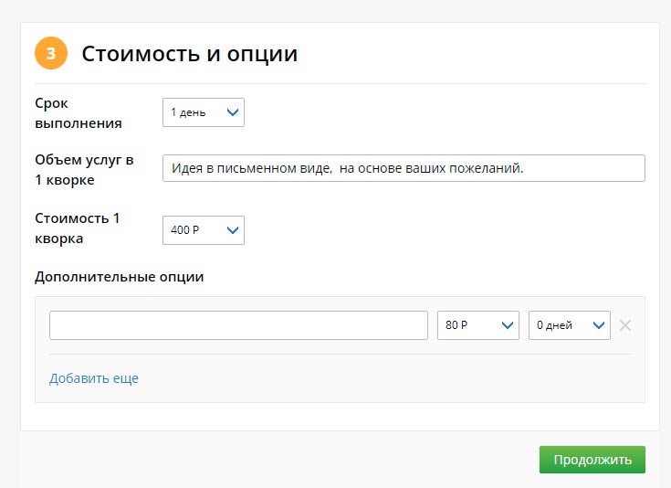 Dodatkowe opcje to najlepszy górny opatrunek dla freelancerów. Jeśli zajmujesz się ręcznie i wysyłasz go pocztą, zdecydowanie nie spełniaj 400 rubli. Następnie w dodatkowych opcjach należy wskazać koszt dostawy. Cena dodatkowej usługi wynosi od 80 do 4800 rubli. Kupujący wybiera to do woli.