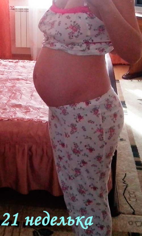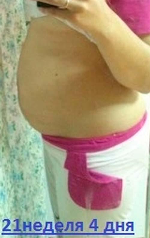 Marina Ku: Também mostrei 426 gramas e 24 cm por 21 semanas, tirei um perfil de foto))))) o problema é a mesma dor na parte inferior da coluna vertebral, a força se esvai mesmo deitada nem sempre facilita, tenho um feto ao longo da parede frontal do útero, acho que essa é a carga na coluna, o estômago é grande como no mês de 7-8, esta é a minha terceira gravidez, com as duas primeiras o feto estava na parede dos fundos, e eu corri até 38 semanas sem dor nas costas, onde não havia nada.