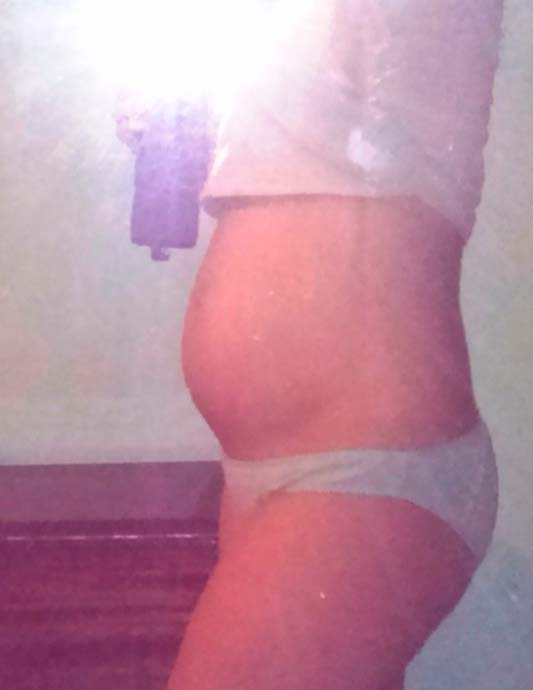 Você vê seu estômago todos os dias e quase nunca percebe como ele cresce. Agora seu útero cresceu tanto que seu fundo está localizado cerca de dois centímetros acima do umbigo. Às vezes, o estômago puxa um pouco, a parte inferior das costas está um pouco dolorida. Esses sentimentos não trazem dor ou desconforto grave.