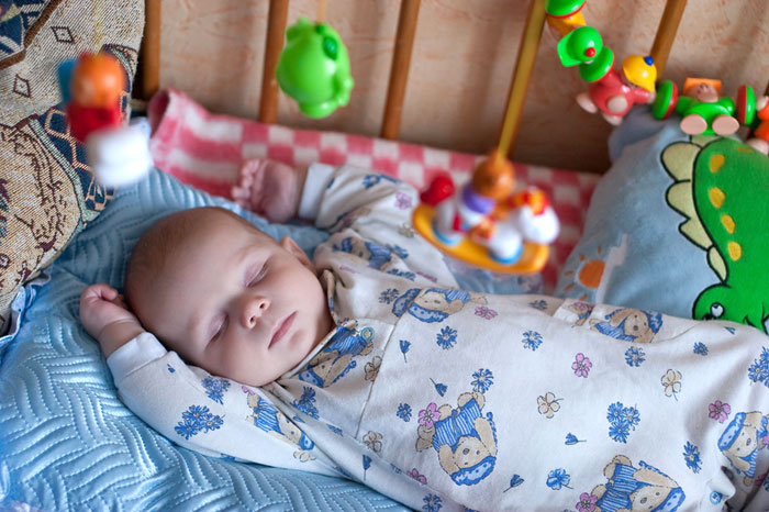 - no início ensinar uma criança a dormir no berço;