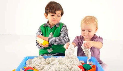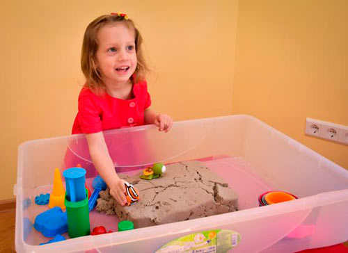 - Os jogos com areia cinética não apenas proporcionam espaço para a imaginação criativa das crianças, mas também desenvolvem habilidades motoras finas e, com ela, como você sabe, fala. E devido a agradáveis sensações táteis, esta areia também tem um efeito terapêutico pronunciado: acalma, alivia o estresse e o nervosismo, causa desejo de criatividade e criação.
