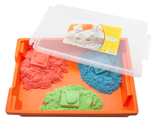 - Além disso, você pode solicitar um conjunto inteiro que, além de empacotar a própria areia, inclui vários moldes, baldes, pás e outras ferramentas relacionadas para brincar com areia.