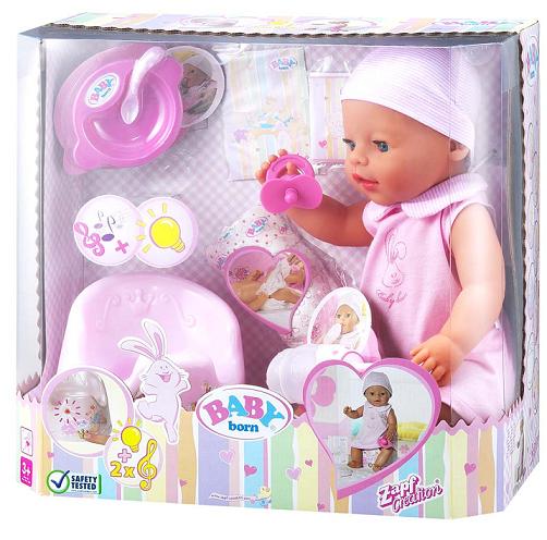 O custo da boneca Baby Born original é de 1500 rublos. Quanto mais “loções” e acessórios tiver um brinquedo, mais caro ele será.