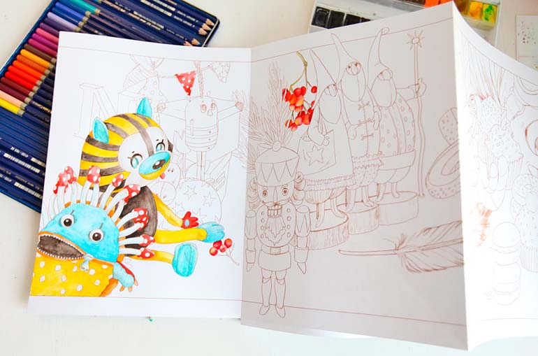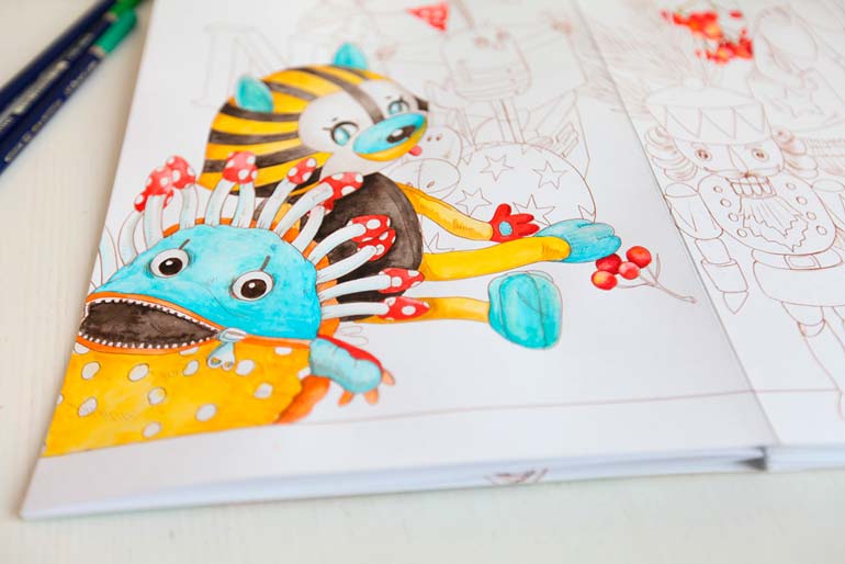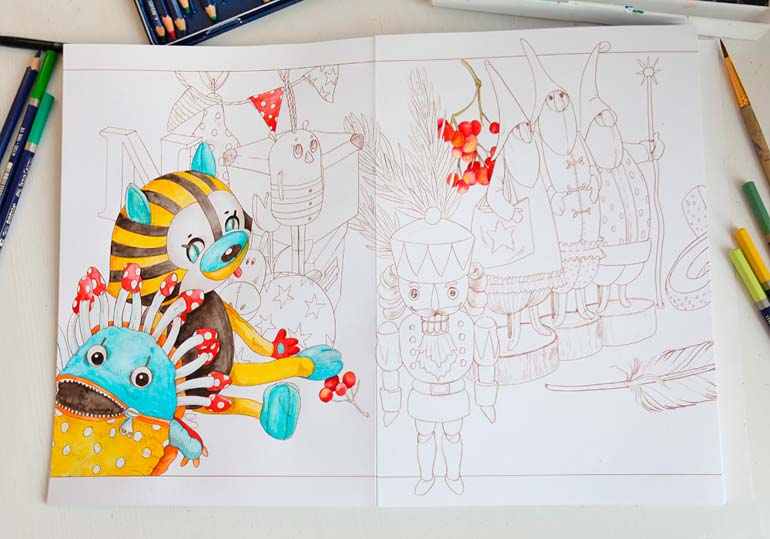 Adultos e crianças com prazer pegam canetas de feltro, lápis e tintas e começam a encher essa história de cores e significado.