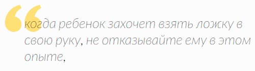 Uma regra importante para as mães e pais que seguem rigorosamente a ordem e estão prontos para alimentar o bebê com uma colher, tanto quanto necessário: se o bebê quiser tomar uma colher com a caneta, não o proíba de ter essa experiência. Mesmo se houver mingau em uma tigela, haverá uma grande bagunça, mas é melhor limpar a cozinha do que ter um aluno que no futuro não sabe absolutamente nada.