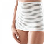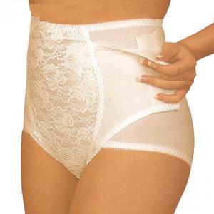 Atadura - calcinha (graça). Este tipo de curativo é feito na forma de cuecas. No estômago há uma inserção densa. Em muitos modelos nas laterais, existem fixadores de vários níveis que permitem ajustar a densidade do empate. Existem modelos com fixadores na parte inferior, eles permitem que você não remova o curativo durante o banheiro. Prós: adere perfeitamente ao corpo, não incha, não escorrega, cintra perfeitamente o estômago. Permite que você vista roupas justas, pois são praticamente invisíveis. Minuses: requer lavagem diária.