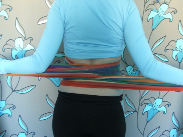 - Deite-se de costas, coloque o tecido no cinto, depois de o endireitar.