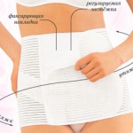 Atadura universal. O mais econômico, porque é usado tanto no pré-natal quanto no pós-natal. É uma fita elástica, uma das quais é larga, a outra é estreita. Após o parto, o lado largo suporta o abdômen, o lado estreito é usado na região lombar. O preço é de 300 a 1000 rublos.