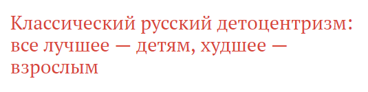 Esta é uma mentalidade russa típica, sagrada, respeitando os princípios detocentrismo: o melhor é para crianças ... e os adultos de alguma forma conseguem.
