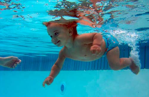 Você pode ensinar seu bebê a ficar na água desde as primeiras semanas de vida. É aconselhável que as aulas tenham sido conduzidas não pelos pais, mas por especialistas. Eles serão capazes de ensinar seu filho a respiração correta e a posição do corpo.
