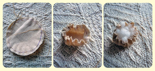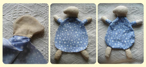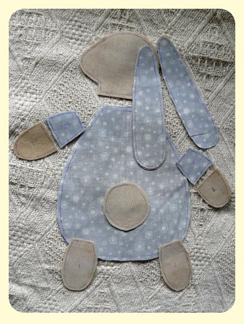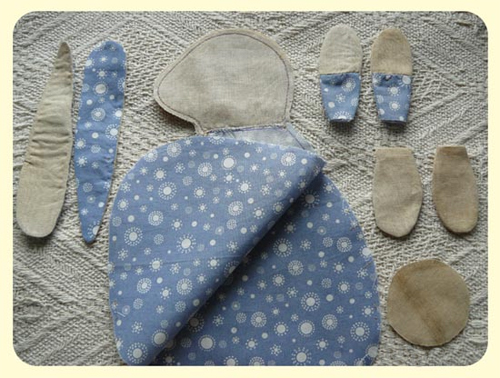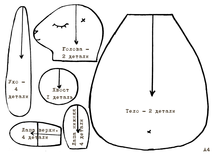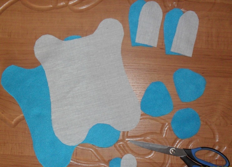 Um padrão de brinquedo é aplicado a ambos os tipos de tecido com margem para costuras, os detalhes são cortados e costurados. O revestimento deve ser pré-preenchido uniformemente com material de enchimento. Em pequenos elementos de um brinquedo de almofada de aquecimento: canetas, pernas, orelhas, etc., coloque firmemente algodão ou pequenos pedaços de pano.