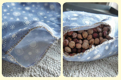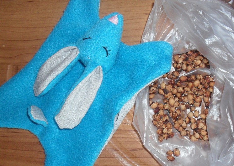 Workshop sobre fabricação de placas de aquecimento a seco. O brinquedo é um saco com enchimento seco (por exemplo, caroços de cereja), que é aquecido no forno. Essa almofada de aquecimento é facilmente aquecida e não esfria por muito tempo.