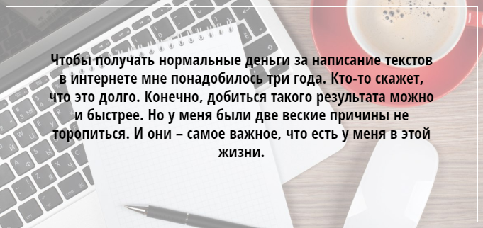 O ano passou. Minha reputação nas trocas onde trabalhei aumentou e clientes pessoais apareceram. Agora, eu até tive que me recusar a escrever qualquer tarefa, devido ao pleno emprego. Continuei a me comunicar com mamães-namoradas nas redes sociais, mas com muito menos frequência e com o objetivo de compartilhar experiências. Eu poderia lhe dizer com habilidade como ganhar dinheiro com textos, por onde começar.
